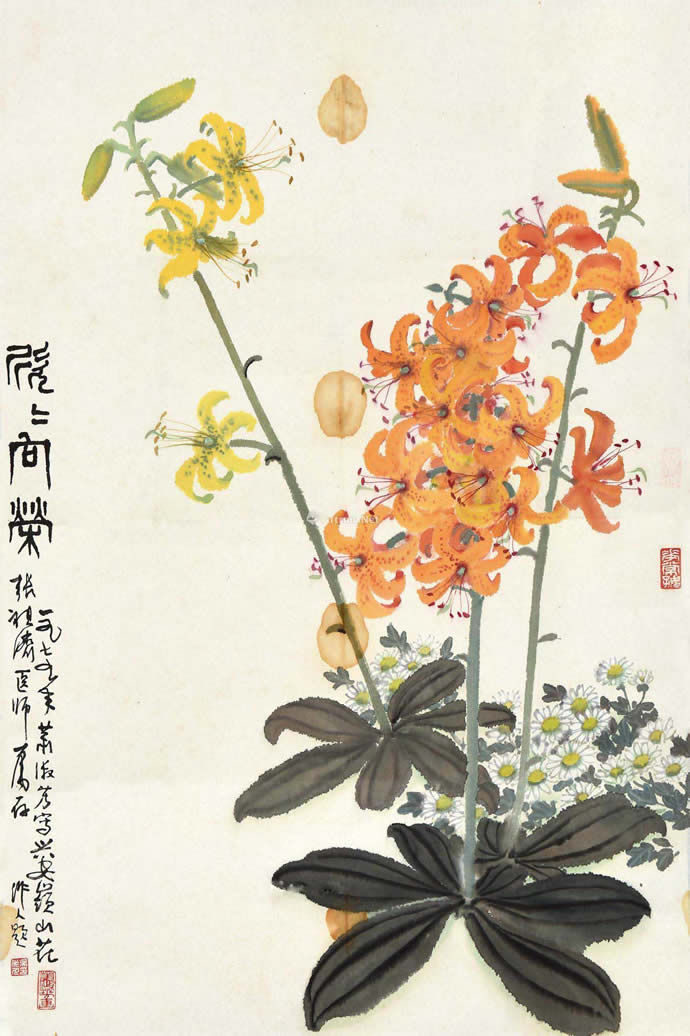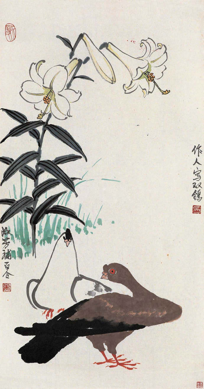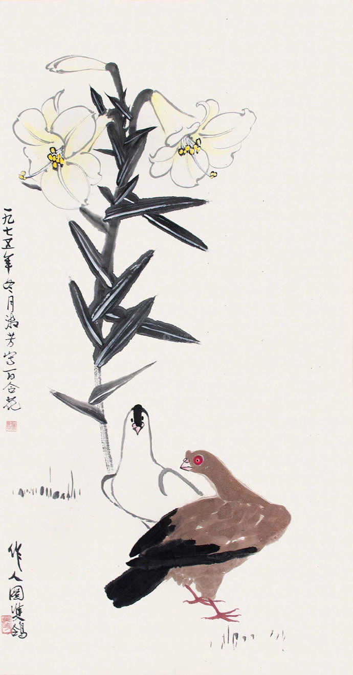 △吴作人萧淑芳 百合和平
