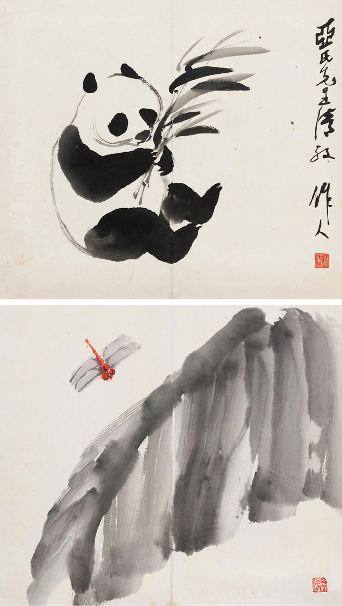 △吴作人萧淑芳 熊猫 芭蕉蜻蜓