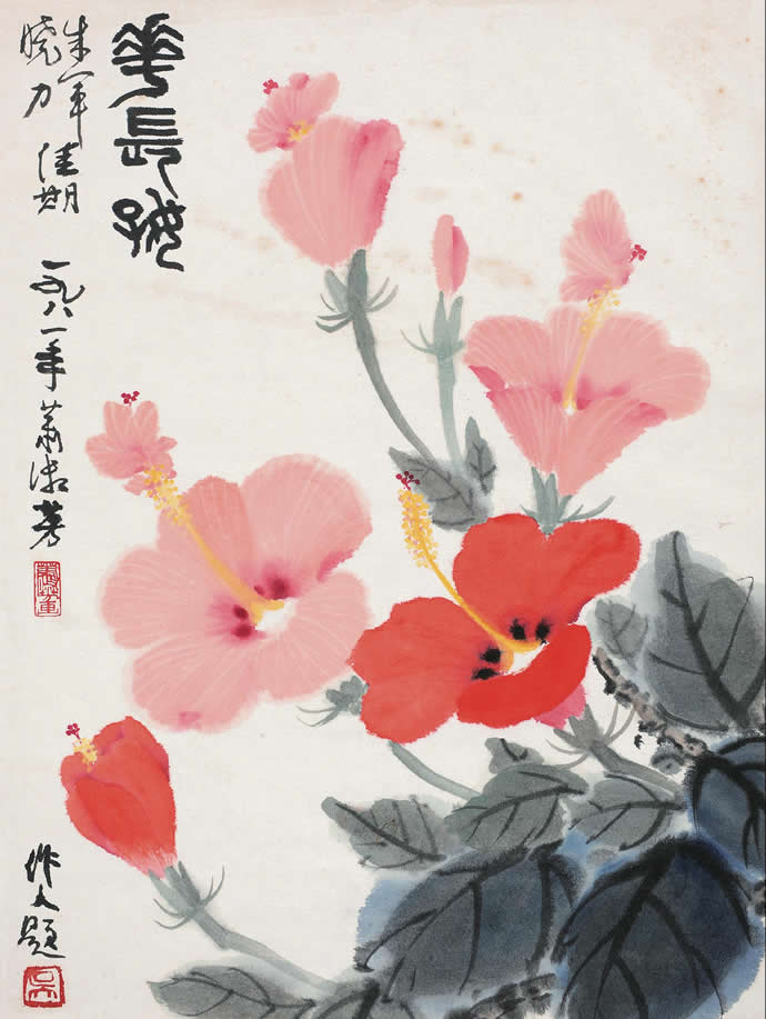 △吴作人萧淑芳 1981年作 花长好