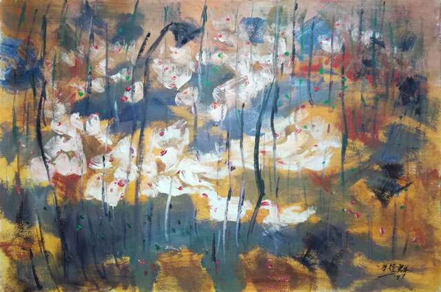 △朱德群抽象油画作品《荷塘群鹅》【本站藏品】