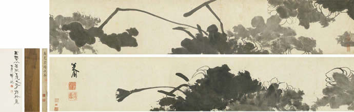 17、八大山人 墨荷图 手卷 纸本
