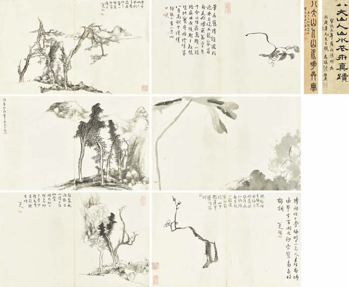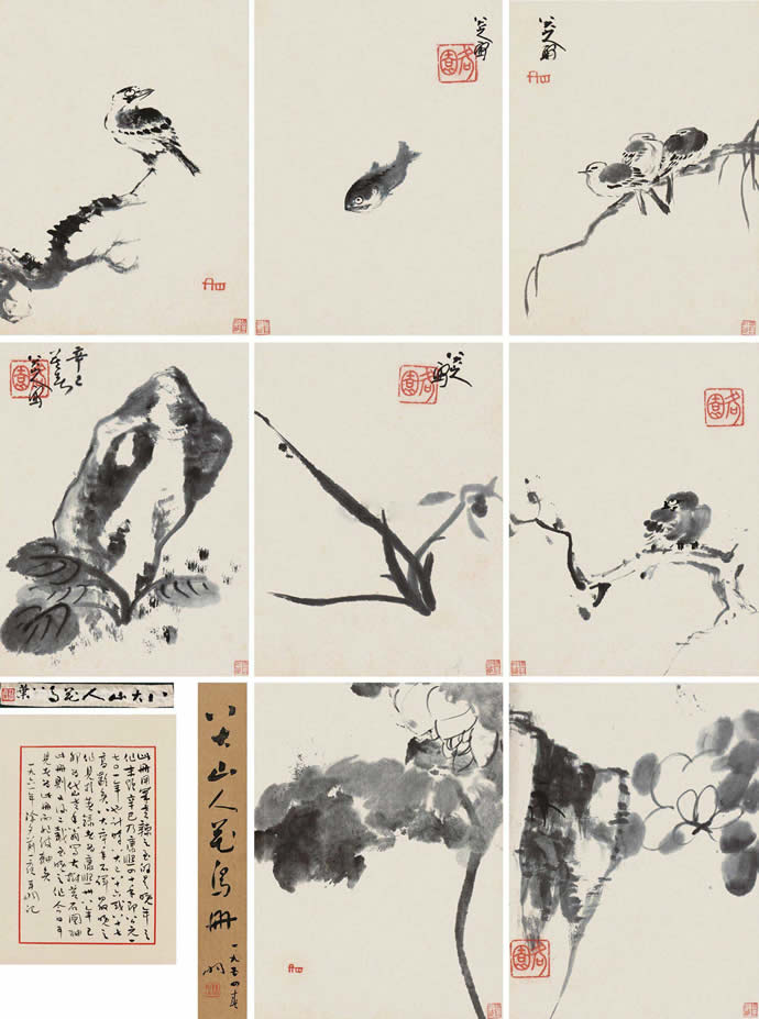 6、八大山人 书画合璧 册 (九开) 水墨纸本