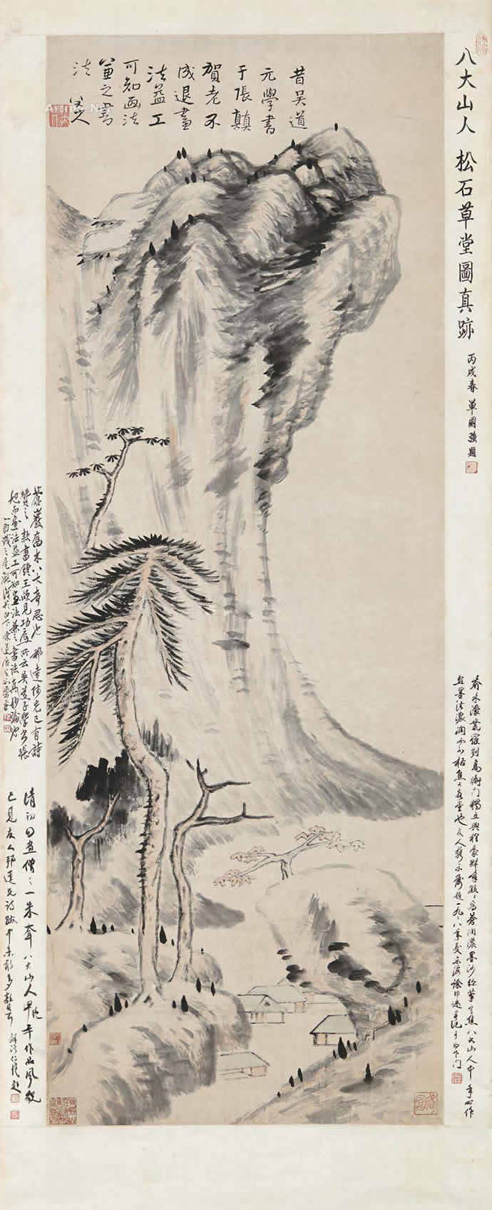 4、八大山人 松石草堂图 立轴 设色纸本