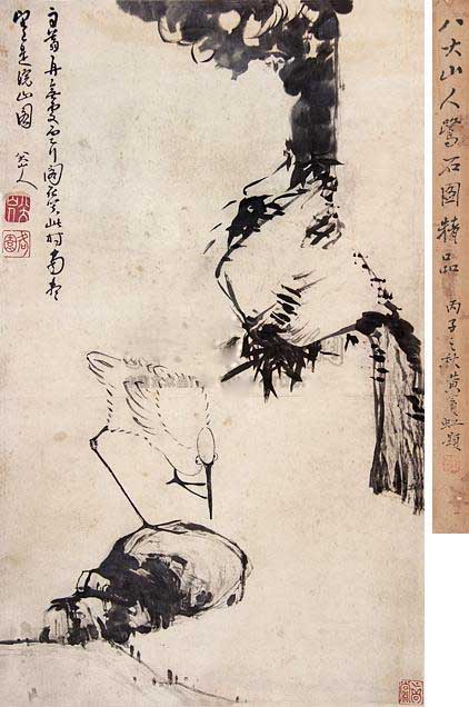 21、八大山人 鹭石图 立轴 纸本