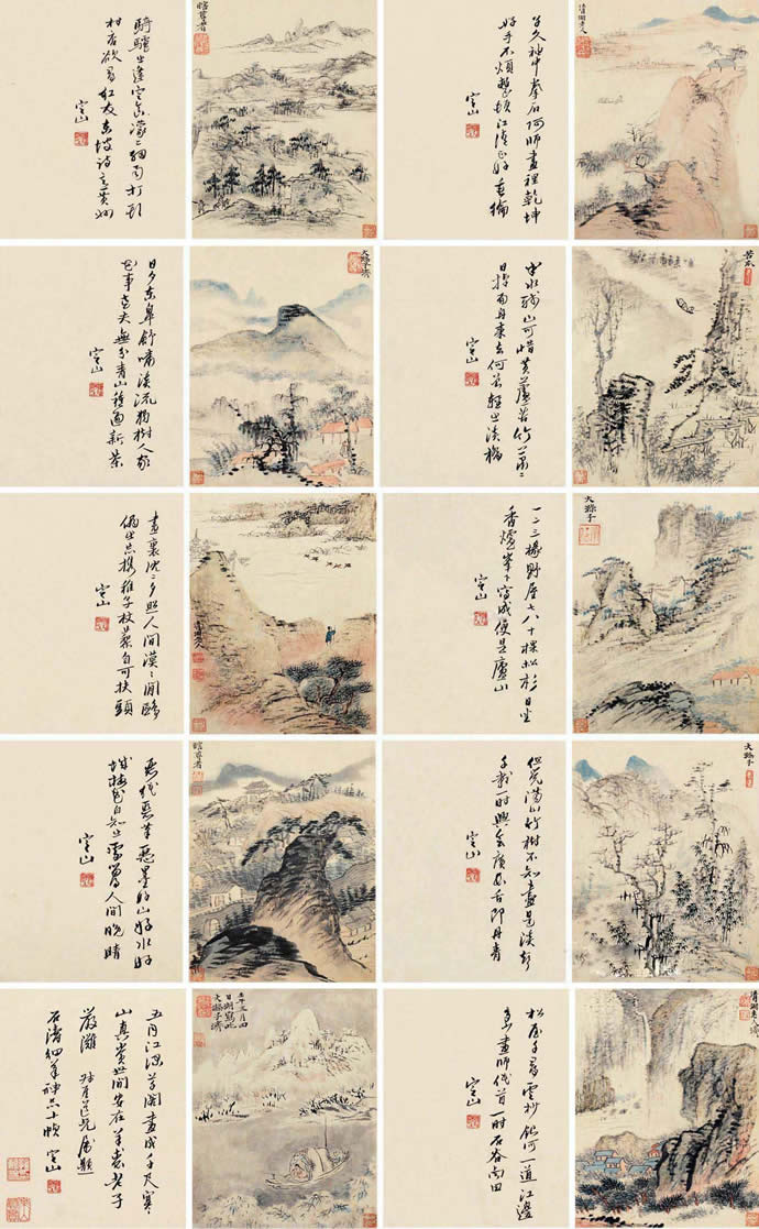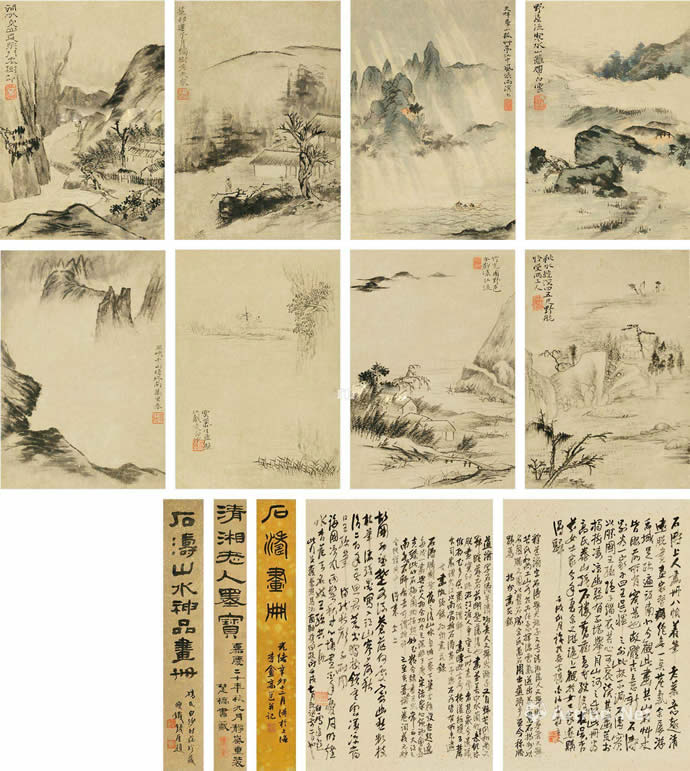 · 石涛 1702年作 细笔山水册 册页 (十开) 设色纸本