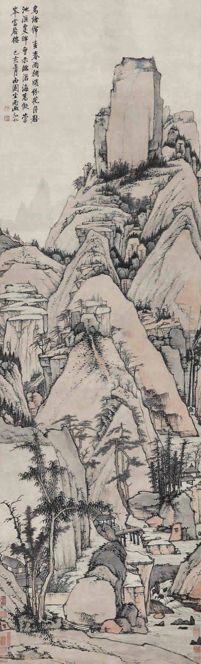 髡残《层岩叠壑图》
