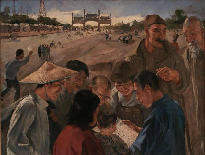 top2、1949年作 解放南京号外 油彩 布面