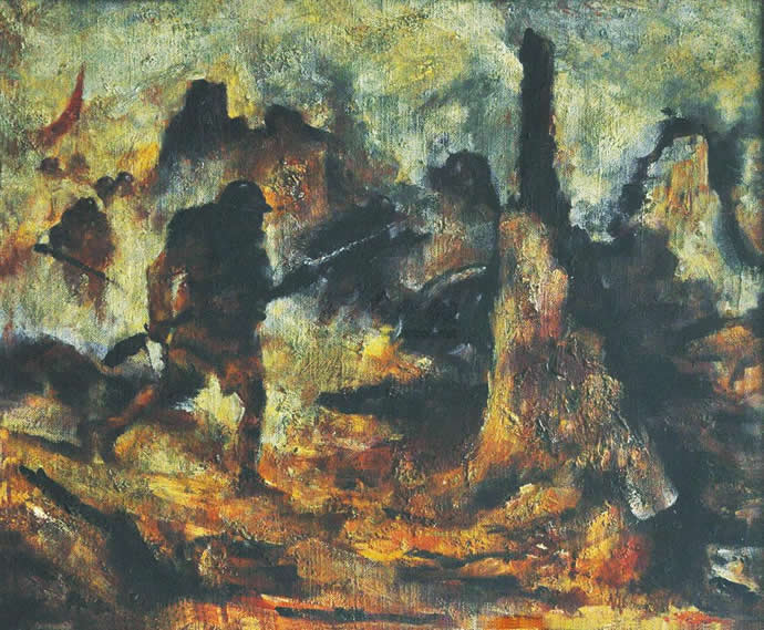 top10、吴作人 战争 布面油画框 镜心