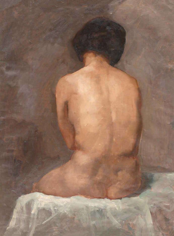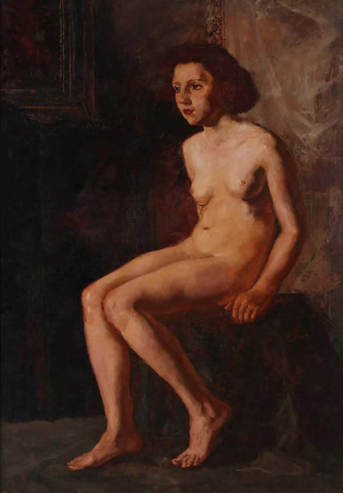 top3、吴作人 20世纪30年代作 坐女人体 布面 油画
