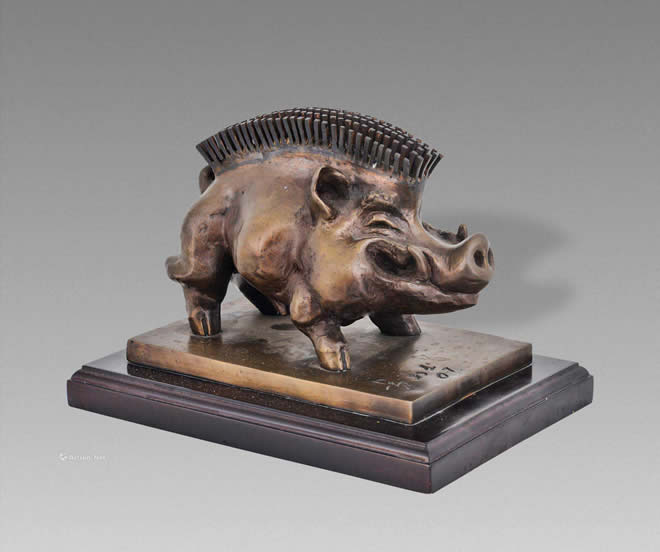 △2007年作 大野猪 铸铜 雕塑 25×15×18cm