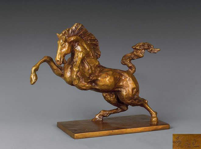 △黄永玉 奔跑 铜雕塑 高36cm;宽42cm
