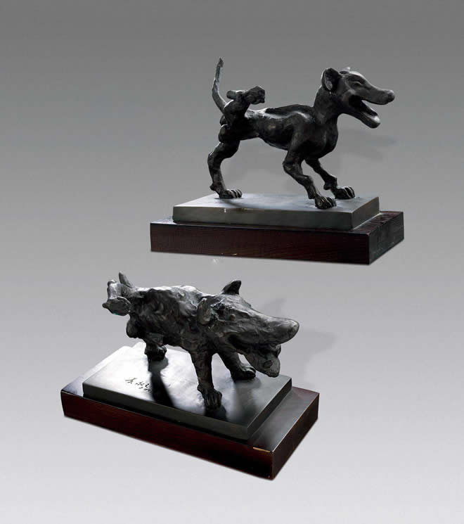 △2005年作 狗 铜 雕塑 27×15×18cm×2