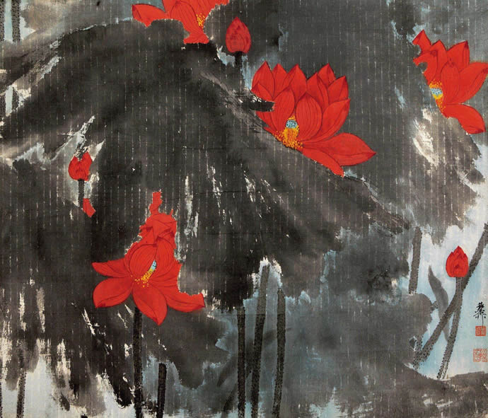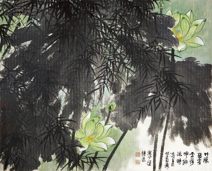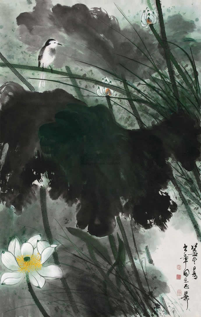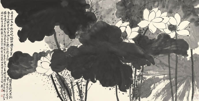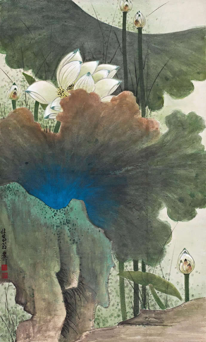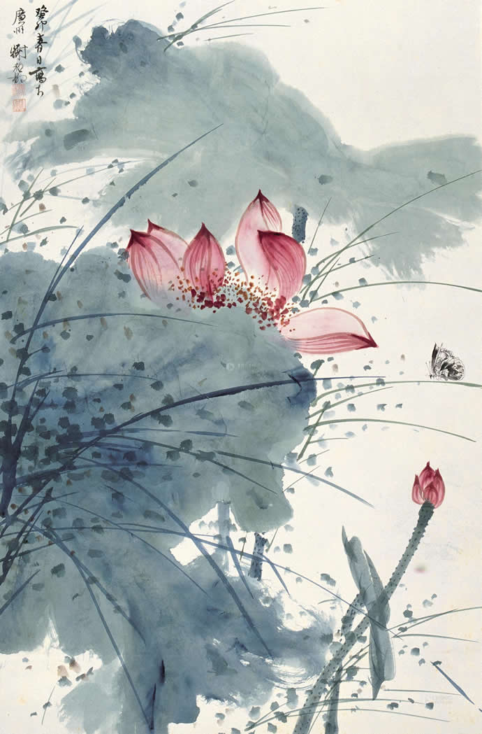 自明清以来,以画荷著称的有三家,一是八大,一是张大千,一是谢稚柳。对三家画荷的格调,著名画家刘旦宅以人相喻,他说八大的荷花,朴实无华,如浑然天成的村姑,是无盐丑女钟离春。张大千的荷花,工笔重彩,富丽堂皇,是雍容华贵的杨玉环。谢稚柳的荷花,清气逼人,犹如高雅素净的李清照。