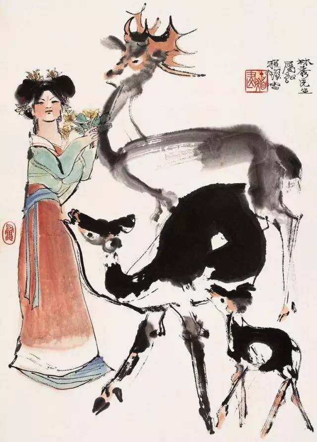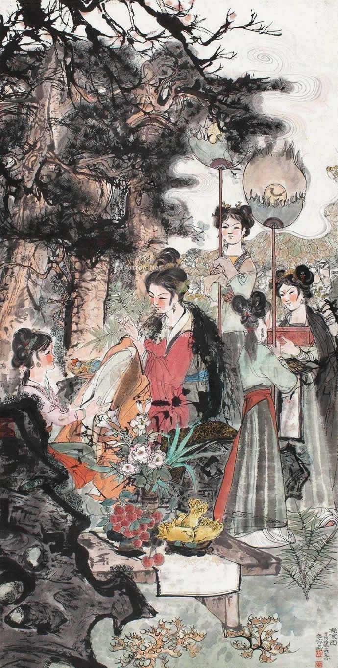 在现代画坛中,程十发是一位艺坛多面手,一生中创作了大量的连环画、人物画、花鸟画及山水、书籍插图等。在上世纪50年代,新中国主张美术要“抛弃旧趣味”,山水、花鸟画被认为是“缺乏生命力的士大夫趣味”,一度被看成是“落后画种”,人物画在“国画改革”运动中备受重视。