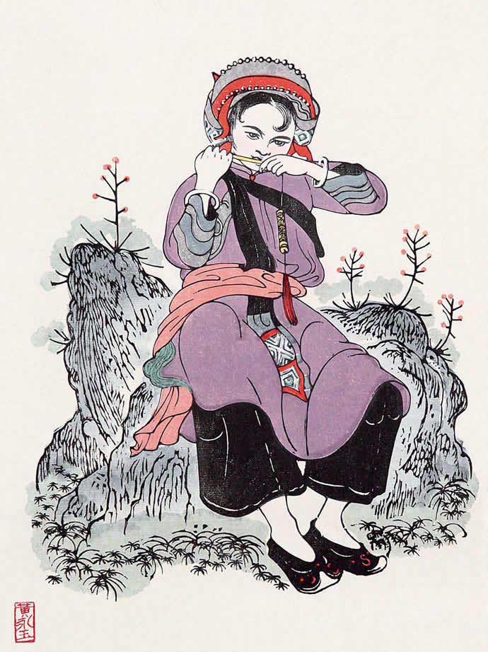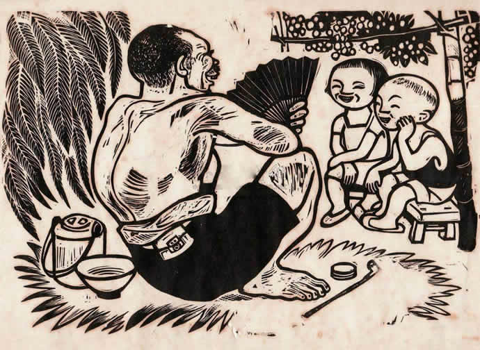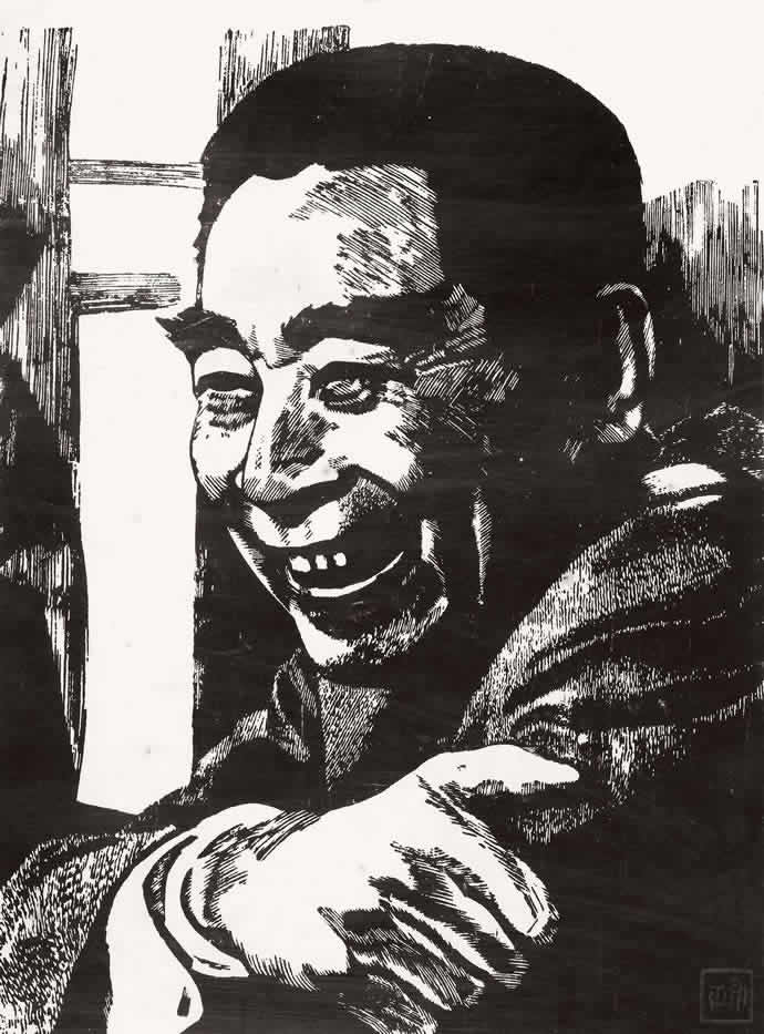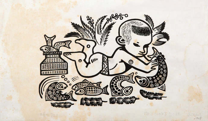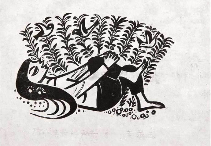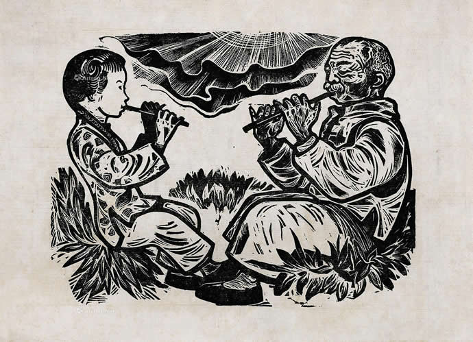 1947年作 吹笛(沈从文小说插图) 木刻纸本 14.3×19.3cm