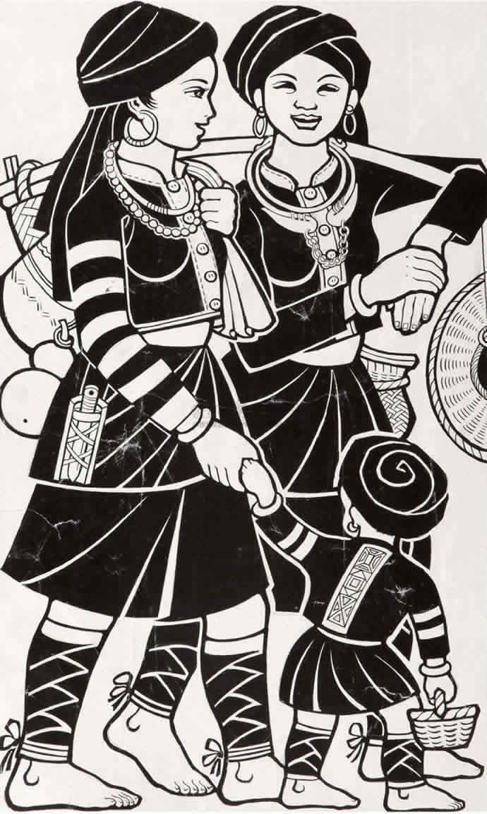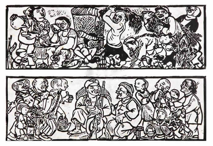 亲人来到如一家 齐心协力收庄稼 木版 15×46cm×2