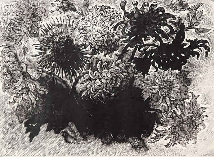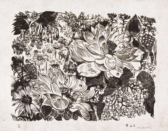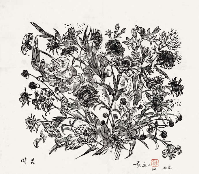 1960年作 版画《时花》 水墨纸本 30×33cm