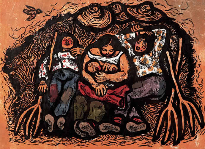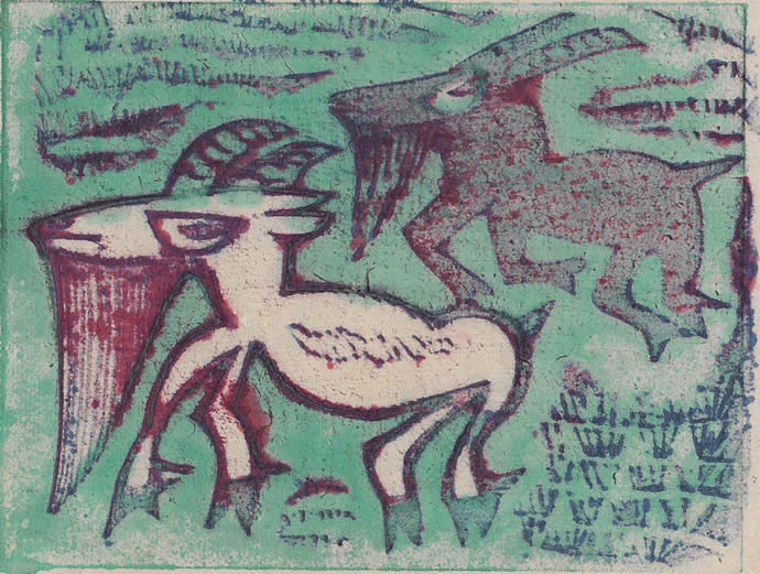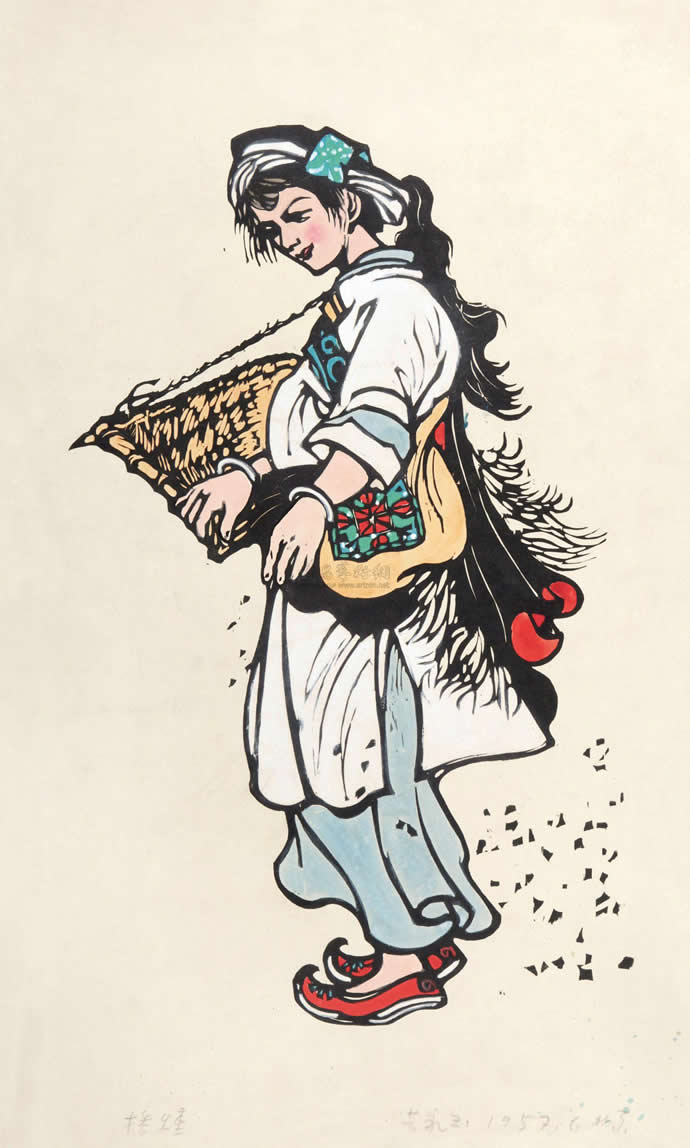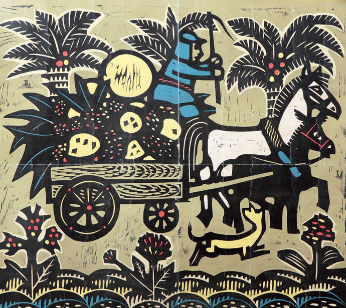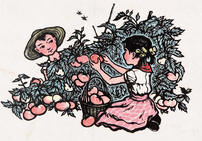 1958年作 丰收的喜悦 木版套色 18×26cm