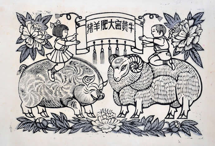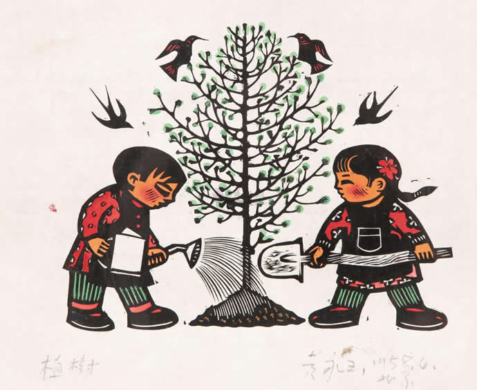 1960年作 新年好 纸本 套色木刻 10×13cm