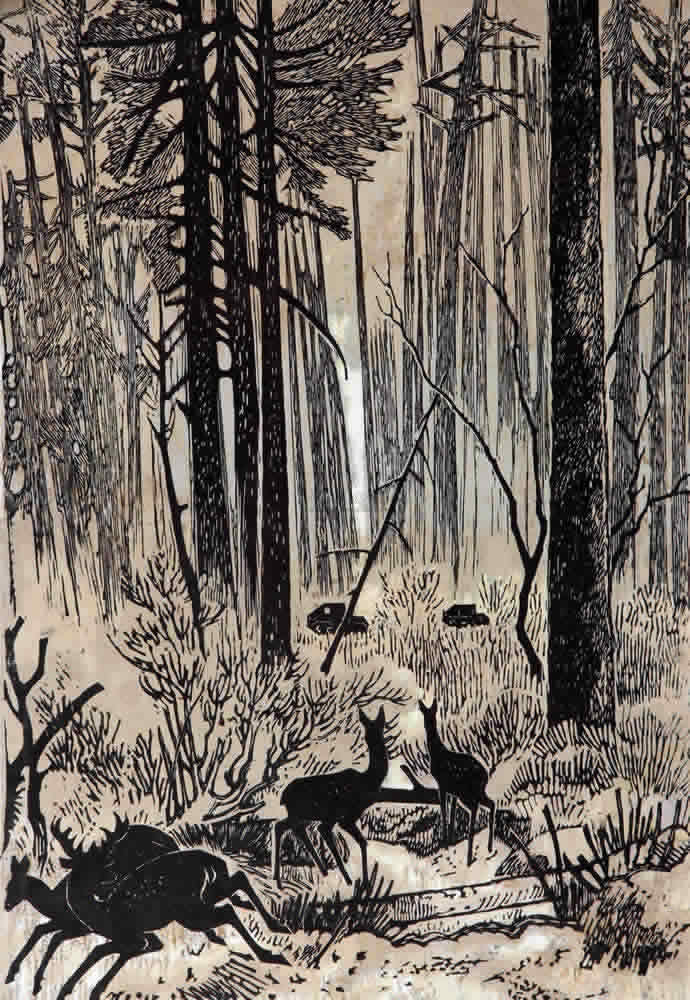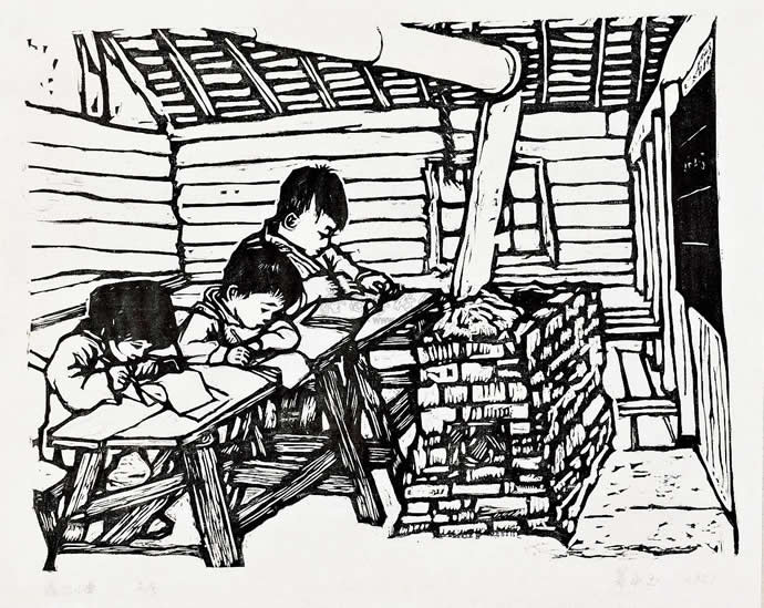 1957年作 森林小学 纸本 版画 40×34.2cm