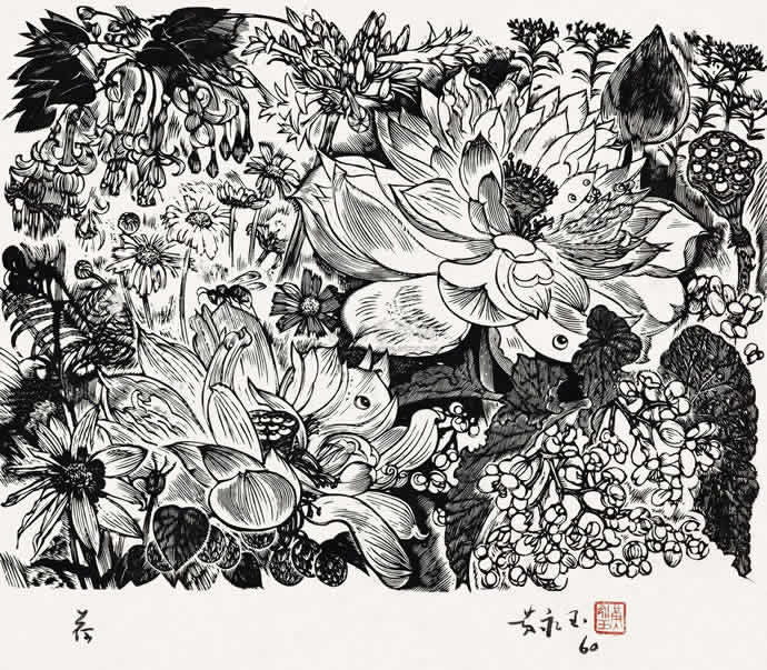 1960年作 版画《荷》 水墨纸本 35×35cm