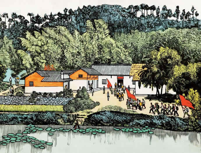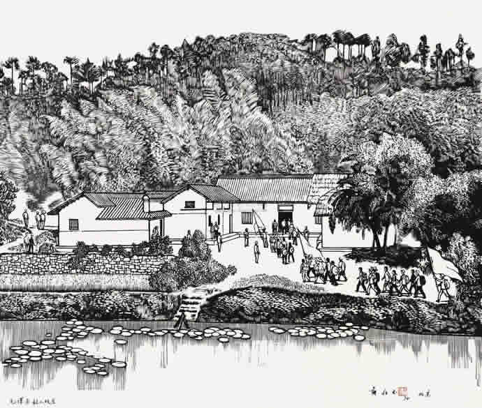 1974年作 版画《***韶山故居》 水墨纸本 60×81cm