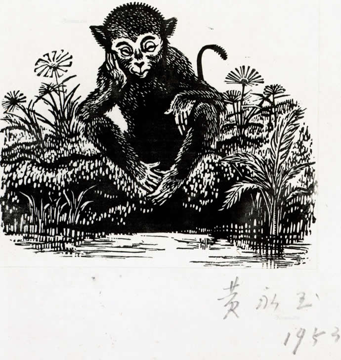 1953年作 猴 纸本 黑白木刻 8×7cm