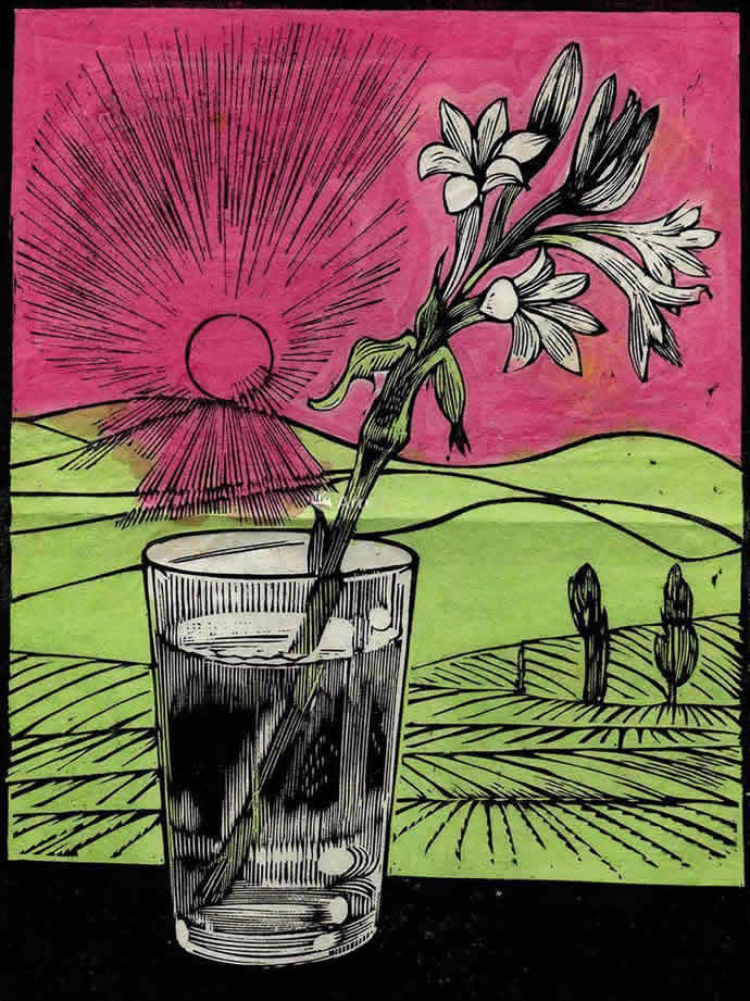 《早晨的太阳》封面设计原稿 套色木刻 20×14.5cm