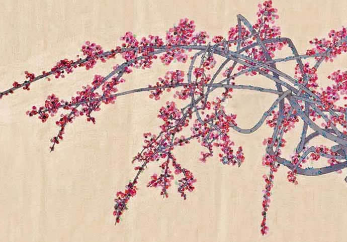 在梅花的枝干中能看到他创作过程的动作,这是真正挥写的当代行为绘画,而致广大、尽精微的细节彰显了他高超的技法功力和经年累月的技法积累。