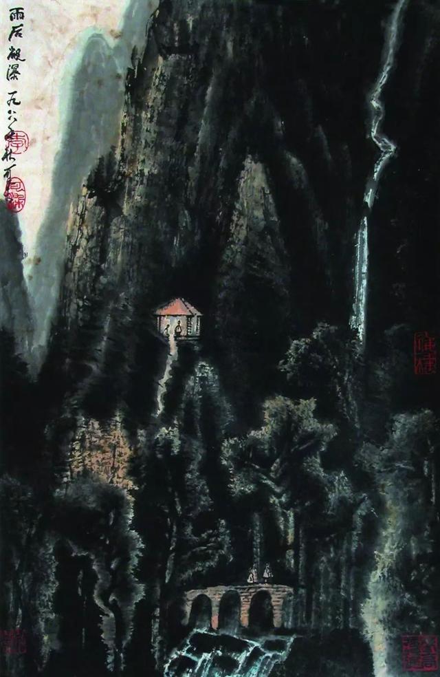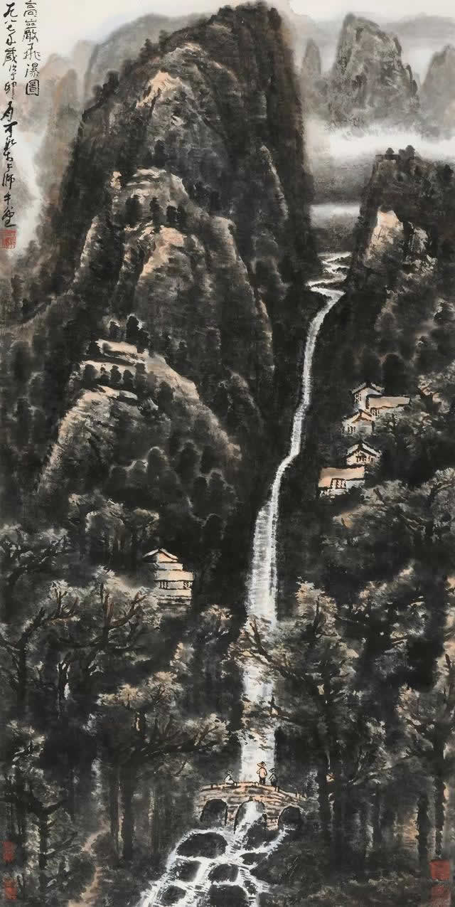 李可染更是以此著称,他擅以沉重而又神秘虚幻的光照感表现瀑布,极具艺术感染力。