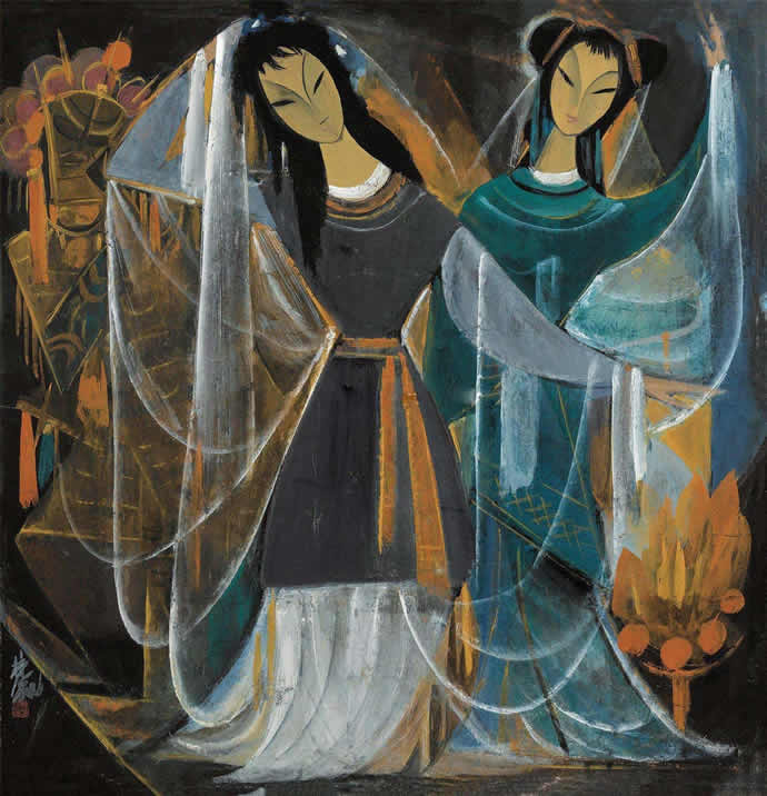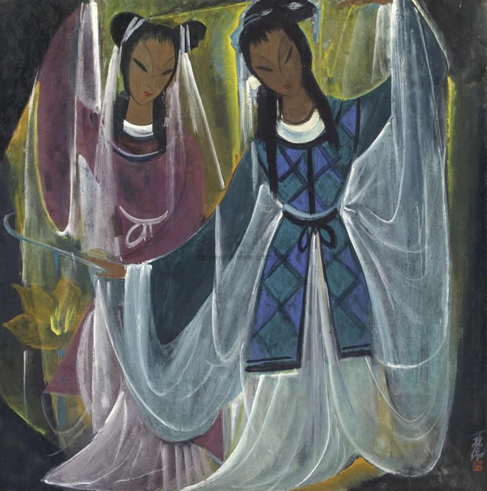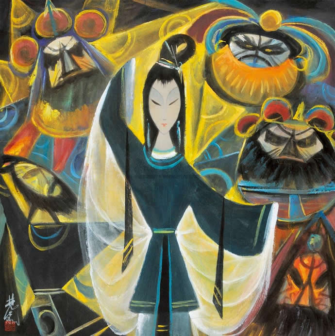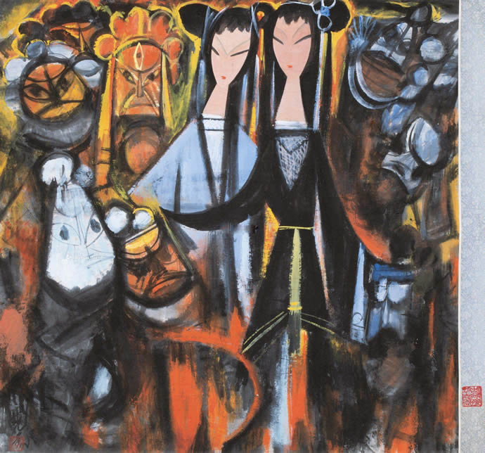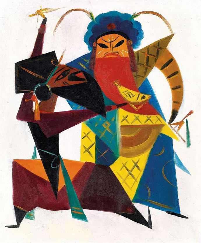 戏剧人物画是林风眠独具特色的艺术创作题材,上世纪六十年代,林风眠居于上海,常与画家关良在一起上剧院观赏戏剧演出,关良的戏剧人物画创作一定程度上也影响到林风眠此类题材的创作。