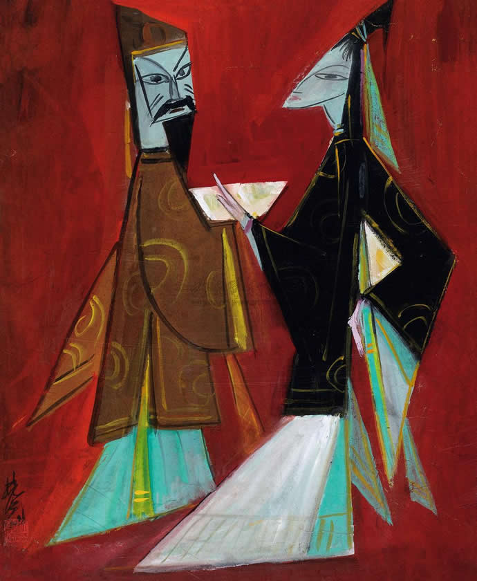林风眠 约1956年作 戏剧系列:刺王辽(鱼藏剑) 油彩 画布