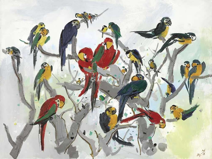 吴冠中 1994年作 鹦鹉 (鹦鹉天堂) 油彩 画布