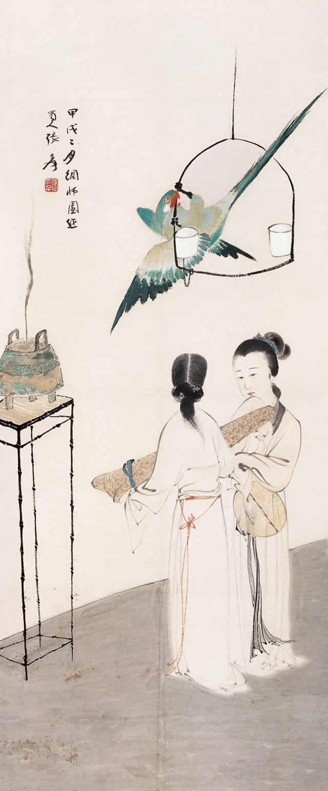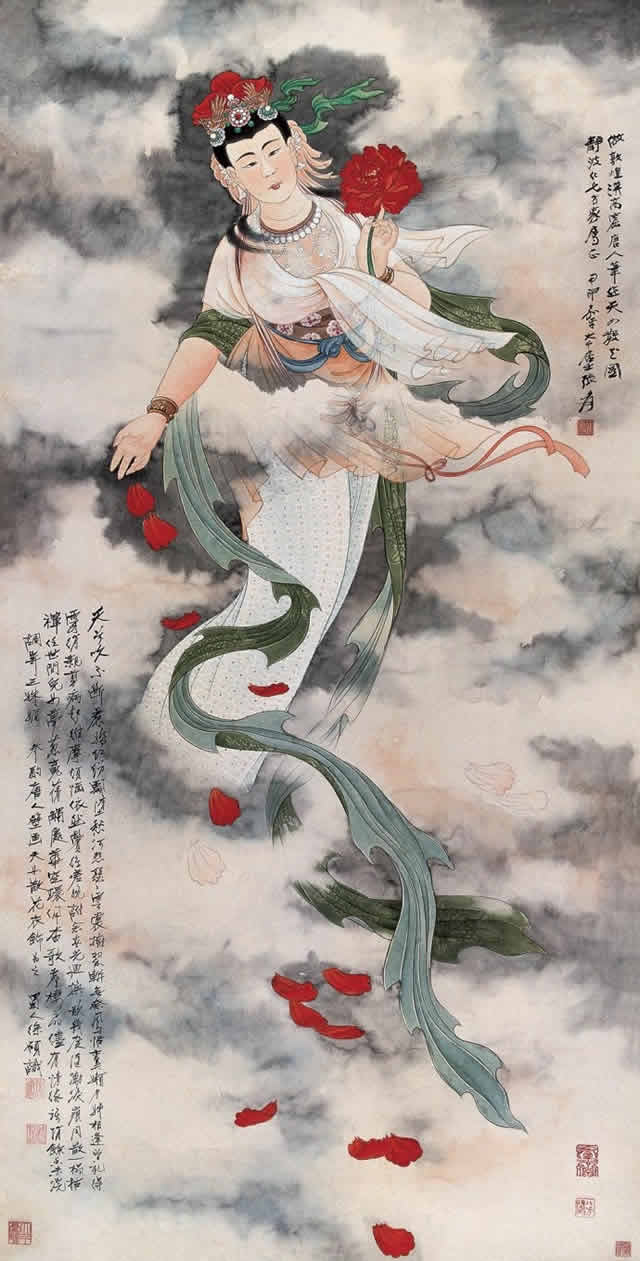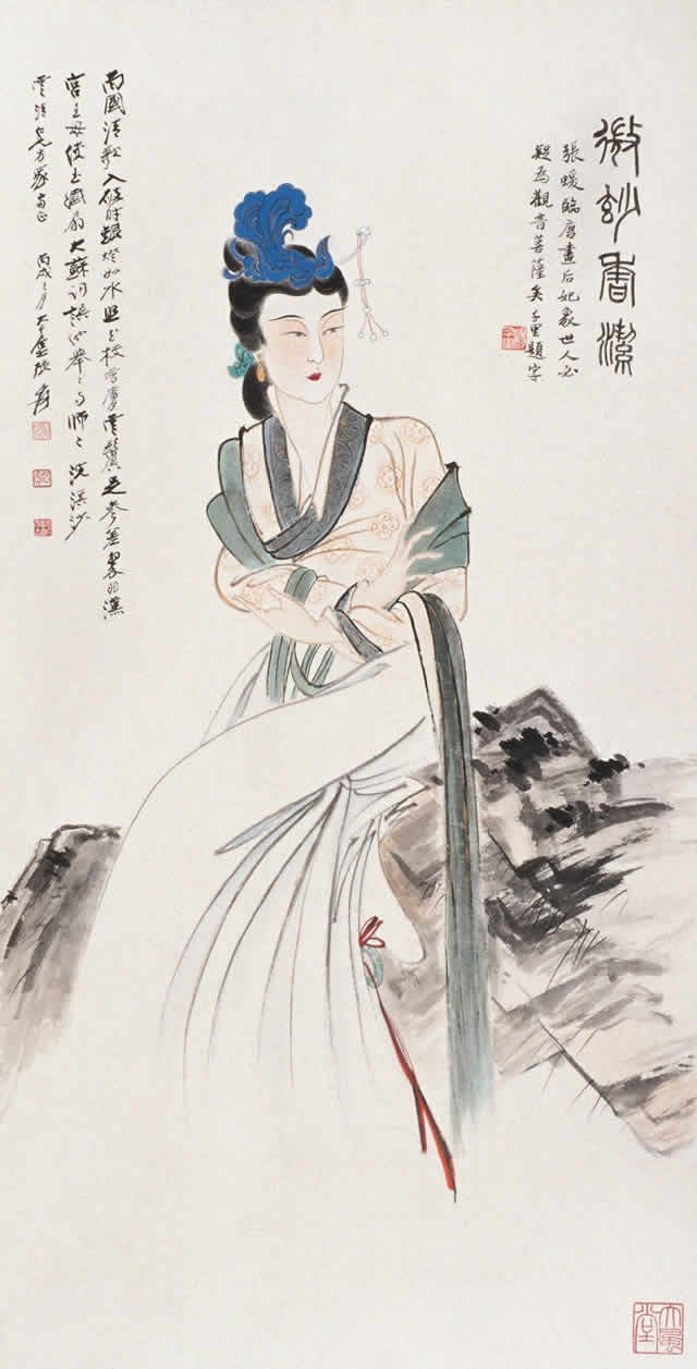 张大千先生《仕女图》中的美女形象,上至历史故事、神话传说的仕女,远至印度女性,近至清代丽人,均仪态万千,美伦美奂,无论在视觉上还是在艺术上,均给观者呈献出心旷神怡、美不胜收的享受。欣赏张大千先生《仕女图》,你是否有这样的感觉?