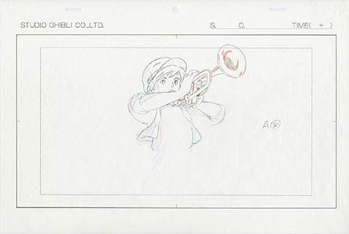 2016年,宫崎骏亲笔修改的《天空之城》原画手稿在日本拍出了2050万日元的价格。这套手稿一共6张,画的是男主角吹小号的经典一幕。
