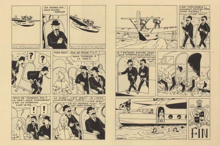 2014年,一幅由比利时漫画家埃尔热于1937年绘制的《丁丁历险记》双开页油墨手稿在拍卖会上以250万欧元成交。据悉,这是迄今“丁丁”系列手稿拍卖的最高成交价。