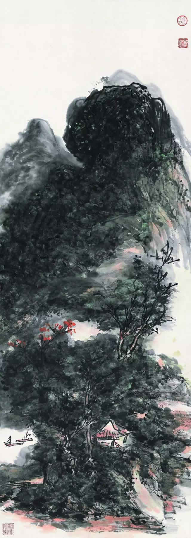 △黄宾虹 青山红树图 纸本水墨设色 浙江美术馆藏