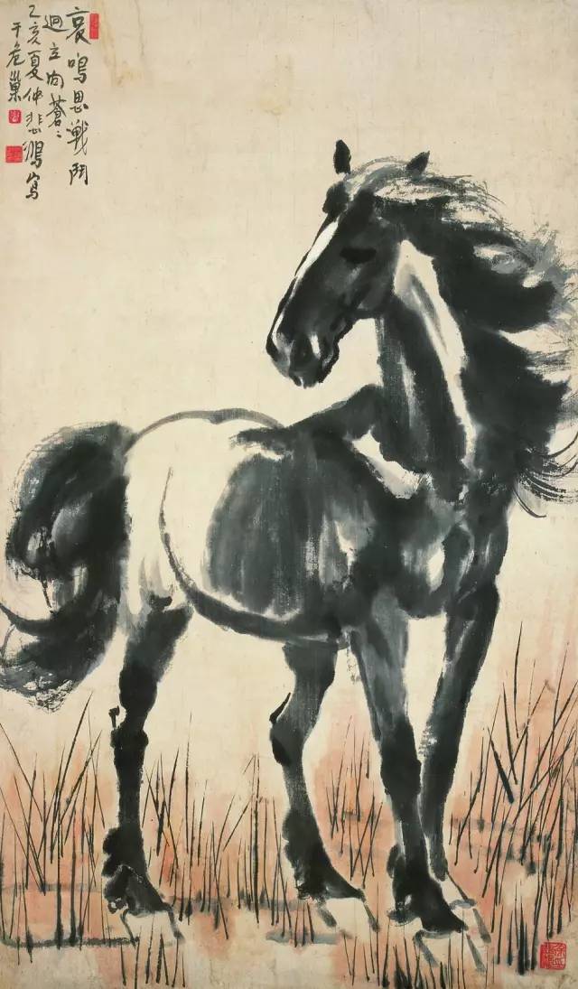 △徐悲鸿 立马图 纸本水墨设色 江苏省美术馆藏