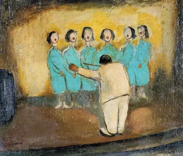 △谭华牧 合唱 布面油画 广东美术馆藏