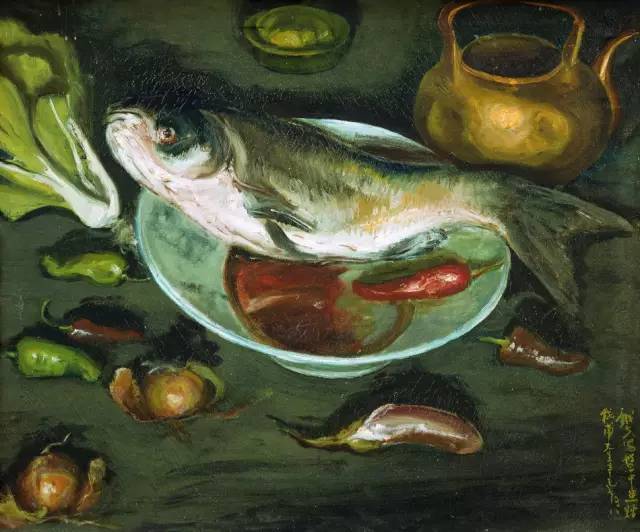 △李铁夫 盘中鱼 布面油彩 广东美术馆藏