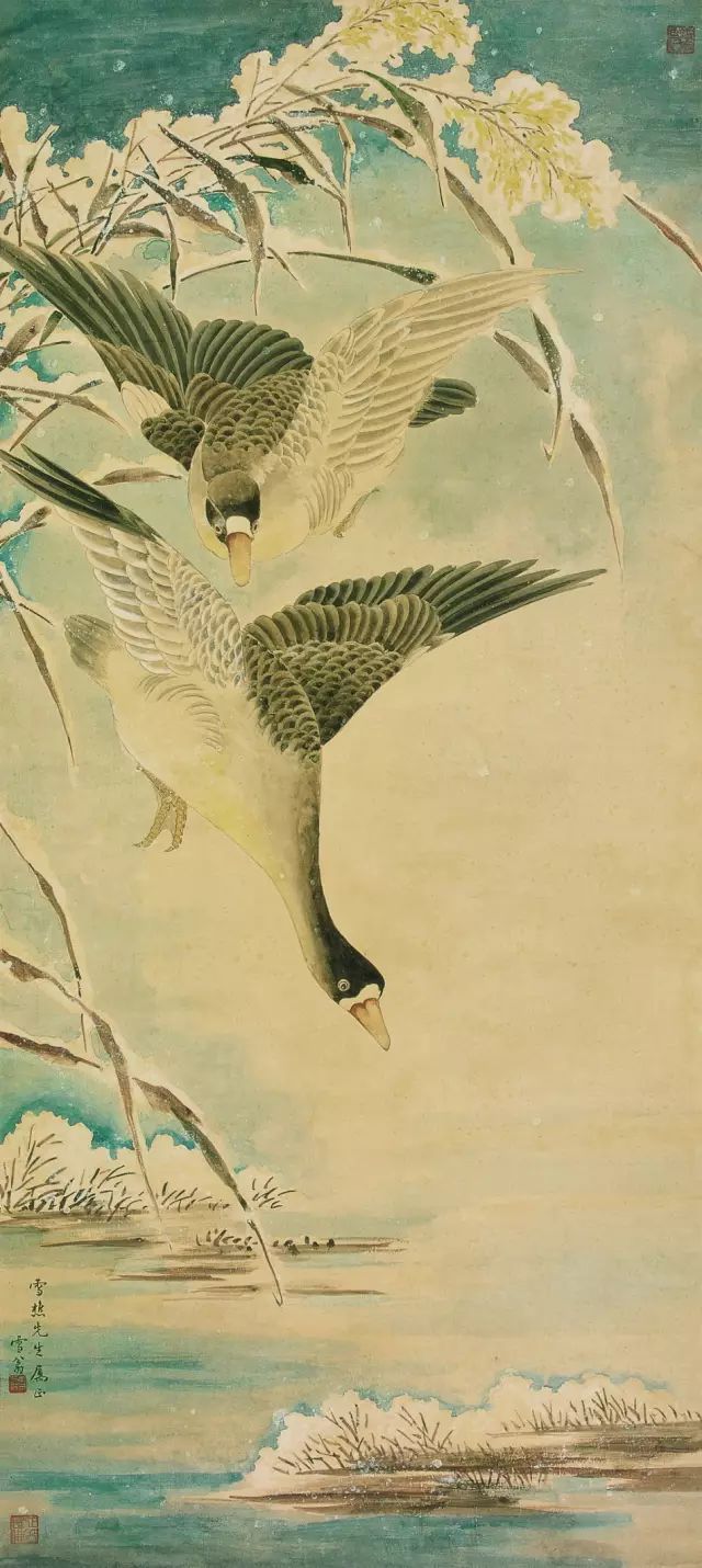 △陈之佛 芦雁 纸本工笔水墨设色 江苏省美术馆藏