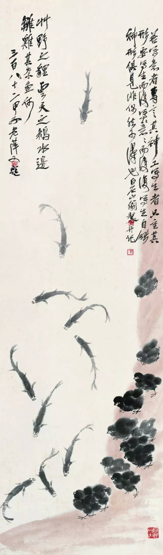 △齐白石 雏鸡小鱼 1926年 北京画院美术馆藏