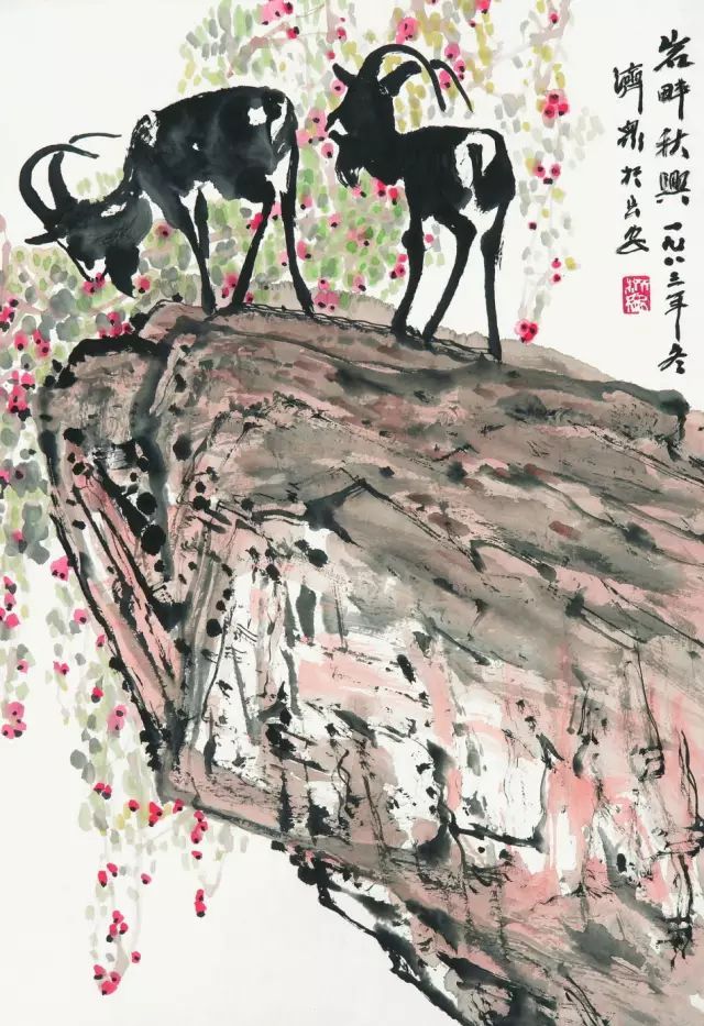 △方济众 岩畔秋兴 纸本设色 陕西省美术博物馆藏