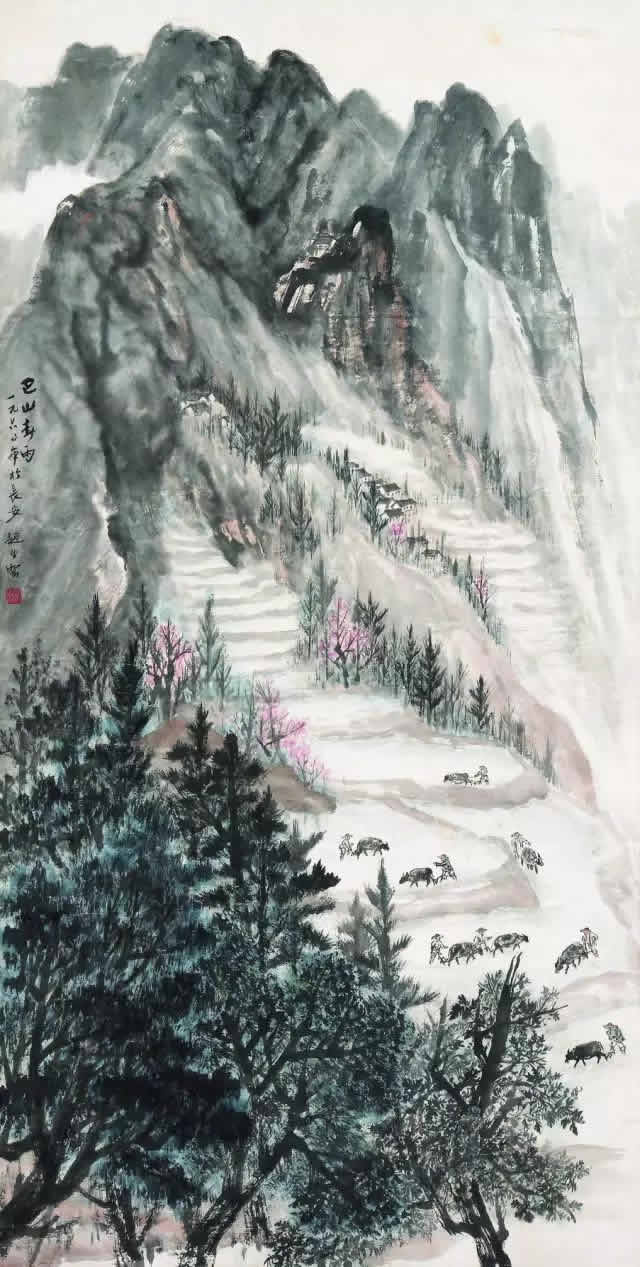 △赵望云 巴山春雨 纸本设色 陕西美术博物馆藏