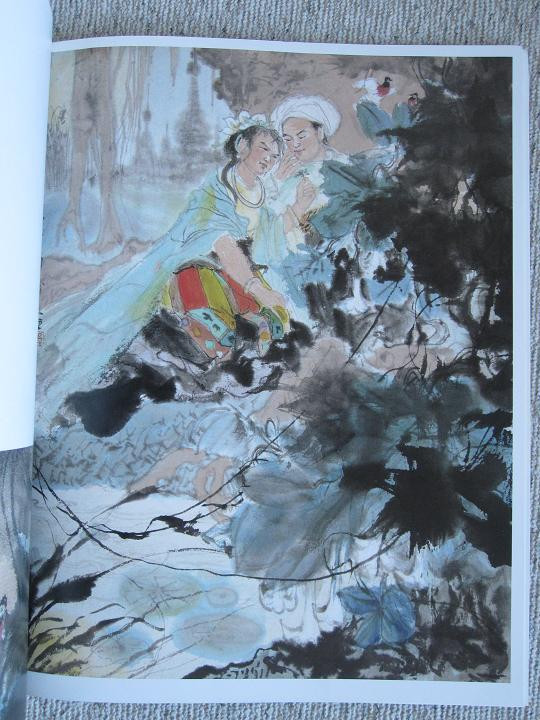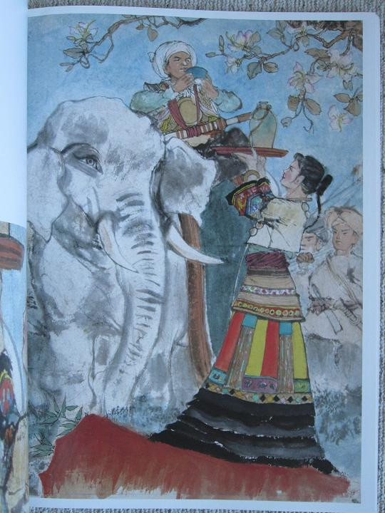 为创作这本连环画,程十发曾长期深入云南边陲,究民风、集民谣,当地习俗、风物、山川形胜一一了然于胸,会之于心,作品不但反映了当地的真实风貌,村寨民俗、服饰器用、异域情调刻画入微,而且画面优美、品相完好,用程十发先生自己的话来说,“创作《召树屯和喃婼娜》之后,才首次感受到中国画与西洋画构图方法的不同,从此不再拘泥于解剖、透视的束缚,而设法表现生活中感受来的意境,注意到如何渲染和夸张”。