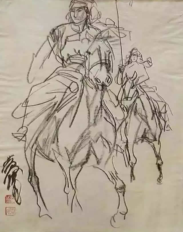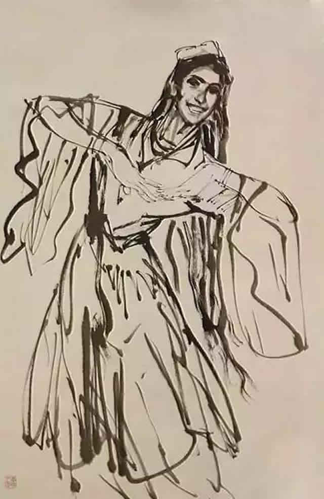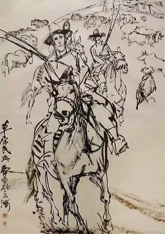 他靠速写起家,并独创性地将速写融入中国画,开启了全新的人物画笔墨范式,拓展了中国画的艺术语言,是自古迄今将速写运用于中国画最为成功的大家之一。