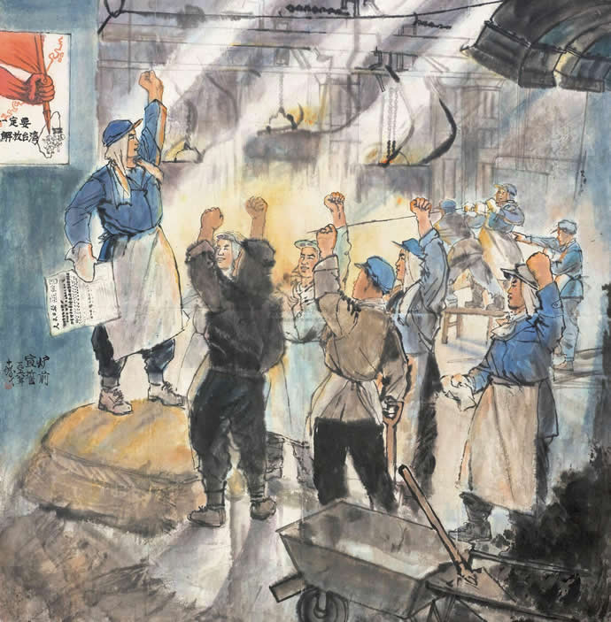 在上海崇源2009春拍中,程十发创作于1958年的《钢厂新建图》以168万元的高价被一位浙江买家收入囊中,是最高估价的四倍。