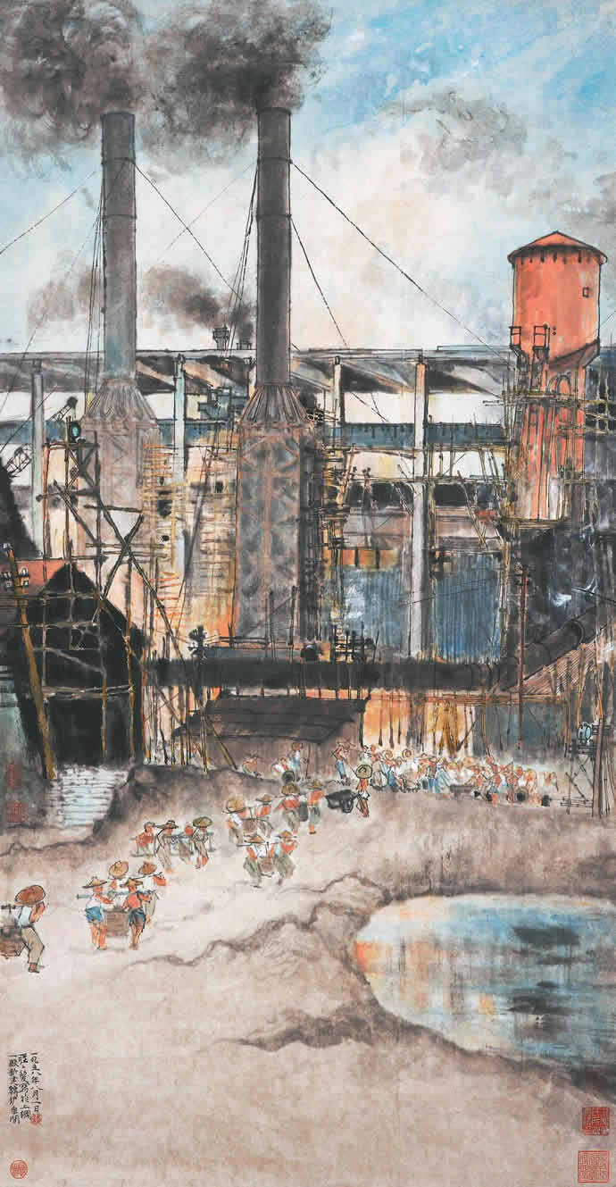 △《钢厂新建图》106×55cm