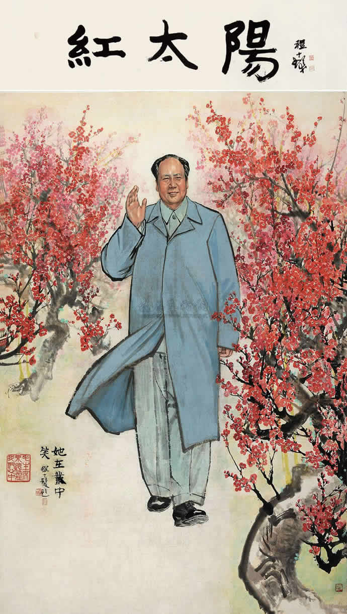 在2011年北京春拍中,程十发的巨幅红色经典《红太阳》,尺幅有37平尺,十分难得,成交价为460万元。是1976年***逝世不久,程十发接受了这幅画的创作任务,花了几个星期完成了巨幅《红太阳——“她在丛中笑”》。
