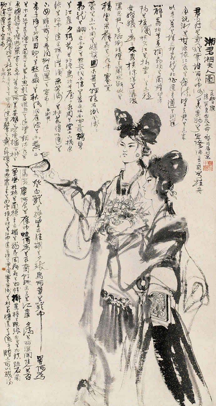 △《湘君湘夫人图》146.5×78.5cm